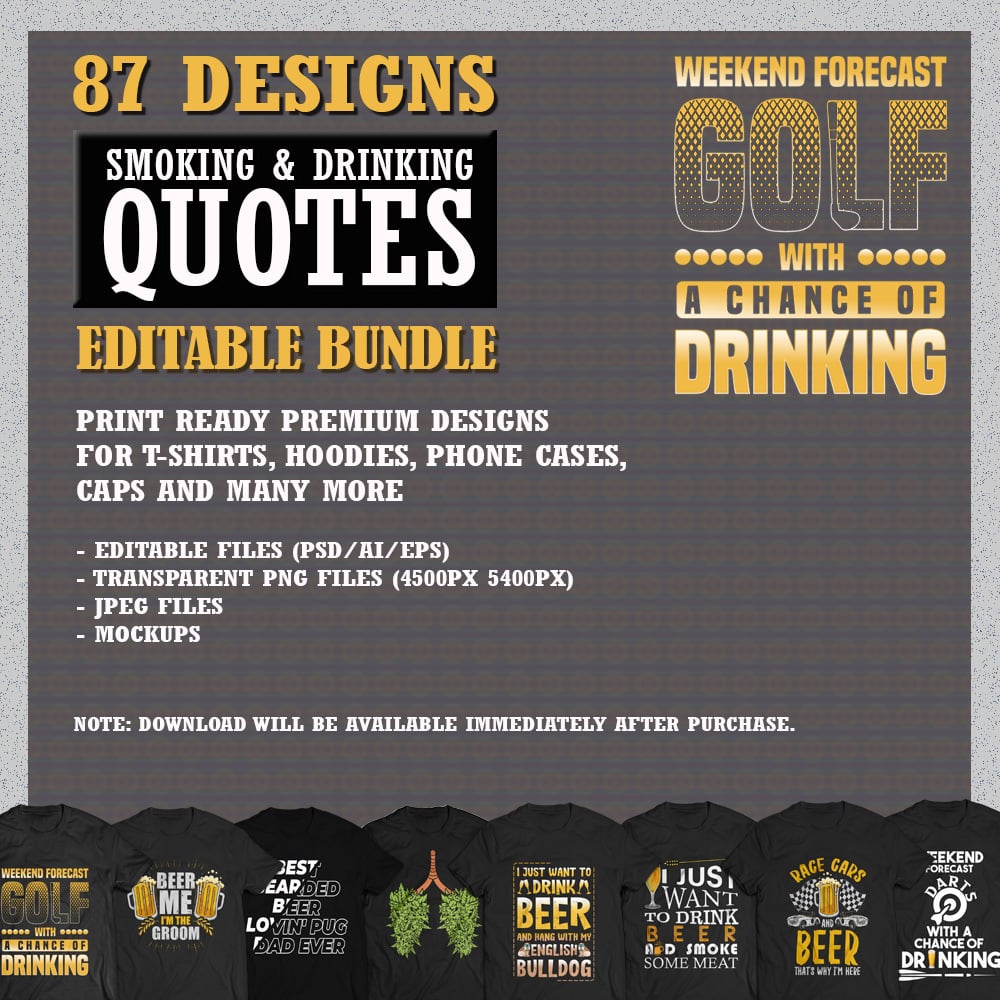 87 Editable Smoking / Drinking T-Shirt Designs Bundle